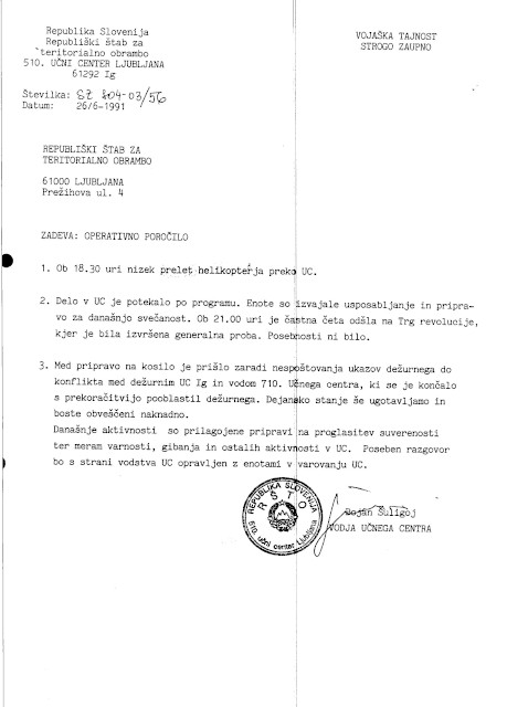 Republiški sekretariat za ljudsko obrambo je 26. junija 1991 objavil javni poziv starešinam in vojaškim osebam v JLA. V njem je bilo opozorilo, da je pristojnost nad mejnimi prehodi in carinsko službo prevzela Slovenija in da za premike enot proti mejnim prehodom tekom dneva ni bilo utemeljenega razloga. Starešinam, ki bi izkazali lojalnost Sloveniji, je sekretariat zagotavljal vse socialne in statusne pravice, odprta vprašanja pa naj bi se reševala z dogovori, brez uporabe sile. Poleg tega je iz dopisa razvidno, da je vodstvo JLA svojim vojakom premik tankov proti mejam pojasnjevalo z lažnimi trditvami o grožnjah iz sosednjih držav.