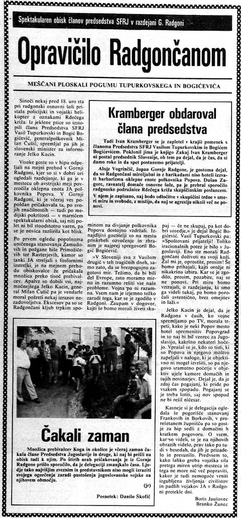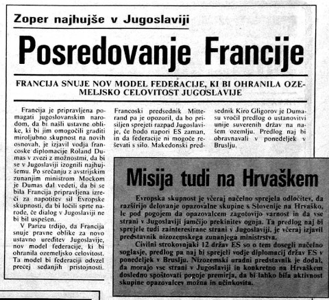 Osamosvojitev Slovenije in vojna, ki je sledila, pa sta bili žal le uvertura v konflikt na ozemlju nekdanje skupne države. Ta je že poleti 1991 začel pridobivati vse večje in vse bolj tragične razsežnosti. Vojna se je najprej razplamtela na Hrvaškem, nato pa še v Bosni. Tam so bosanski Srbi ob pomoči Srbije in JLA začeli vojno in do konca leta nadzorovali več kot 70 odstotkov ozemlja. Na njem so izvajali etnično čiščenje nad Hrvati in muslimani, več mesecev oblegali Sarajevo in iz države odgnali več kot milijon in pol beguncev. Evropska skupnost, OZN, ZDA in Velika Britanija pri prizadevanjih za zaustavitev napadov niso bile uspešne. V Bosno so nazadnje poslali »modre čelade« ali Unprofor, vojaške enote mednarodne skupnosti.